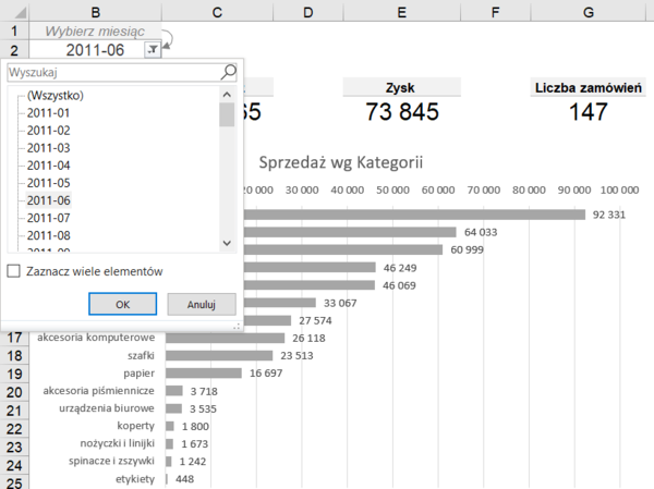 Sposób na fragmentator jednokrotnego wyboru z listą rozwijaną w tabeli przestawnej Excel