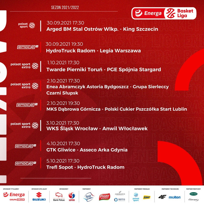 Od czwartku nowe emocje w Energa Basket Lidze! Cztery spotkania, w tym “święta wojna” pomiędzy WKS Śląskiem a Anwilem, będą transmitowane w sportowych stacjach Polsatu. Pozostałe mecze dostępne w serwisie Emocje.TV