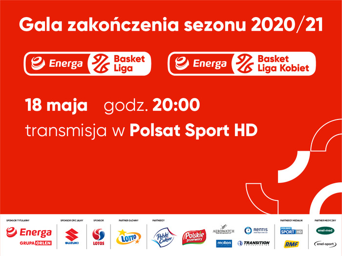 We wtorek 18 maja w Warszawie odbędzie się uroczysta gala, która zakończy sezon 2020/2021 Energa Basket Ligi i Energa Basket Ligi Kobiet. Transmisja od godz. 20.00 w Polsacie Sport.