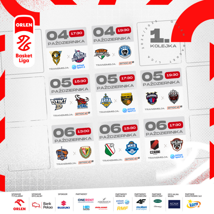 Już w piątek rusza długo oczekiwany sezon 2024/25 ORLEN Basket Ligi! Zaczynamy od spotkania beniaminka, Górnika Zamek Książ Wałbrzych z wicemistrzem, Kingiem Szczecin. Trzy mecze będzie można zobaczyć w Polsat Sport 2, a pozostałe starcia dostępne będą w serwisie Emocje.TV |