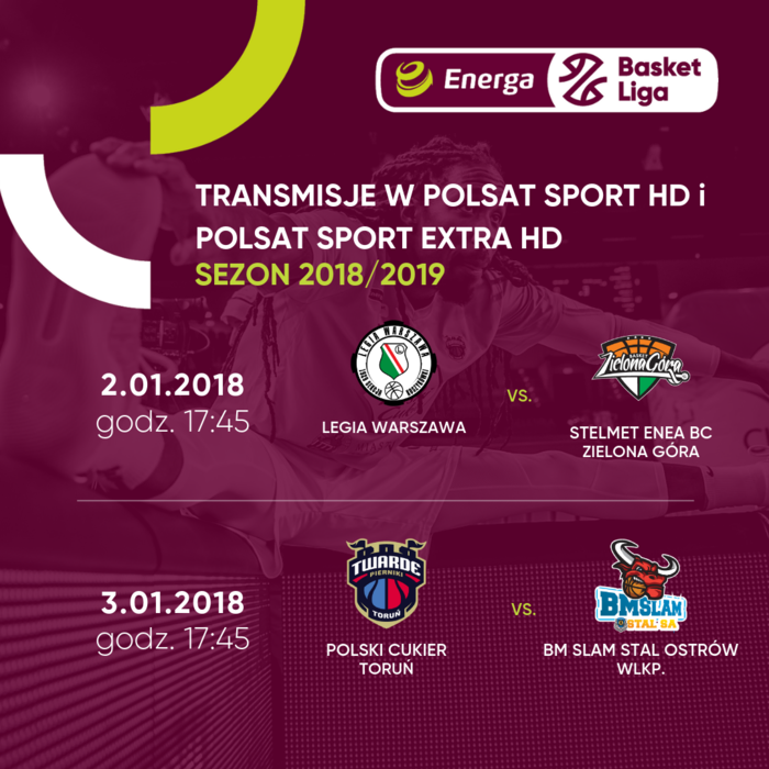 Dopiero przywitaliśmy 2019 rok, a już gramy w Energa Basket Lidze! W środę Polsat Sport pokaże mecz Legii ze Stelmetem Eneą, a w czwartek w Polsacie Sport Extra będzie można zobaczyć starcie Polskiego Cukru z BM Slam Stalą. Pozostałe spotkania można śledzić w serwisie Emocje.TV