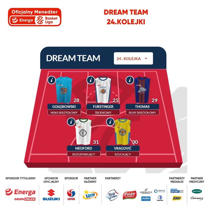 Dream Team w 24. kolejce Menedżera Energa Basket Ligi zdobył aż 143 punkty. Ciągle można dołączyć do rywalizacji i zakładać nowe zespoły. Czekają atrakcyjne nagrody!