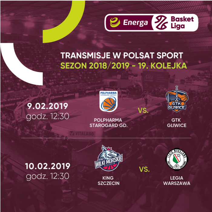 Ten weekend to dla wielu drużyn Energa Basket Ligi ostatni sprawdzian formy przed turniejem finałowym Suzuki Pucharu Polski w Warszawie. W sobotę i w niedzielę Polsat Sport pokaże mecze Polpharma - GTK i King - Legia. Pozostałe starcia można zobaczyć w serwisie Emocje.TV