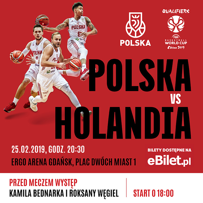 Mecz koszykarskiej reprezentacji Polski, a przed nim wyjątkowy występ? To możliwe tylko w ERGO ARENIE! 25 lutego od godz. 18:00 kibice zobaczą występy Kamila Bednarka oraz Roksany Węgiel, a o 20:30 kluczowy dla awansu na Mistrzostwa Świata mecz Biało-Czerwonych z Holandią! Bilety dostępne na eBilet.pl