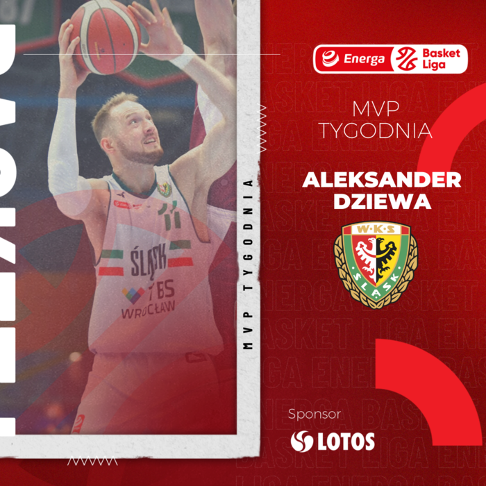 Aleksander Dziewa z WKS Śląska Wrocław został wybrany najlepszym zawodnikiem 13. tygodnia rozgrywek Energa Basket Ligi. Partnerem akcji jest Grupa LOTOS.