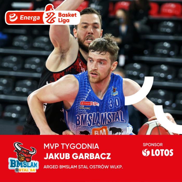 Jakub Garbacz z Arged BMSlam Stali Ostrów Wlkp. został wybrany przez Energa Basket Ligę najlepszym graczem 17. tygodnia rozgrywek. Partnerem akcji jest Grupa LOTOS.