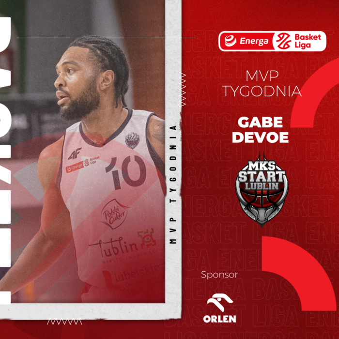 Gabe DeVoe z Polskiego Cukru Startu Lublin został wybrany najlepszym zawodnikiem 17. tygodnia rozgrywek Energa Basket Ligi. Partnerem akcji jest ORLEN.