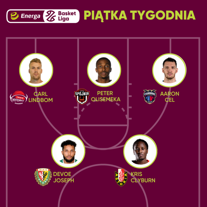 Devoe Joseph, Kris Clyburn, Carl Lindbom, Aaron Cel i Peter Olisemeka - to najlepsza piątka 20. tygodnia Energa Basket Ligi.