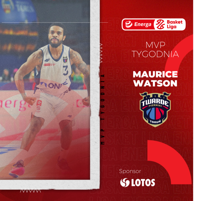 Maurice Watson z Twardych Pierników Toruń został wybrany najlepszym zawodnikiem 4. tygodnia rozgrywek Energa Basket Ligi. Partnerem akcji jest Grupa LOTOS.