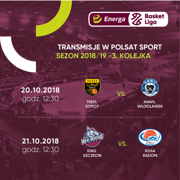 W piątek rusza 3. kolejka Energa Basket Ligi! W sobotę Polsat Sport pokaże mecz Trefl Sopot - Anwil Włocławek, a w niedzielę będzie można zobaczyć starcie Kinga Szczecin z Rosą Radom. Pozostałe spotkania dostępne są w serwisie Emocje.TV