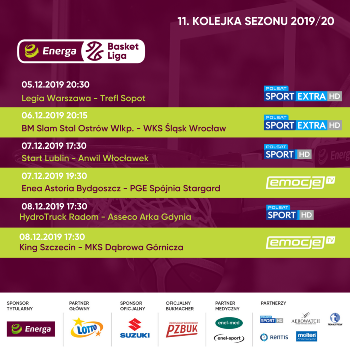 11. kolejka Energa Basket Ligi rozpoczęła się już wcześniej, ale to w weekend nastąpi kulminacja emocji! Od czwartku do niedzieli zapraszamy na cztery transmisje do sportowych kanałów Polsatu. Pozostałe mecze można jak zwykle oglądać w serwisie Emocje.TV