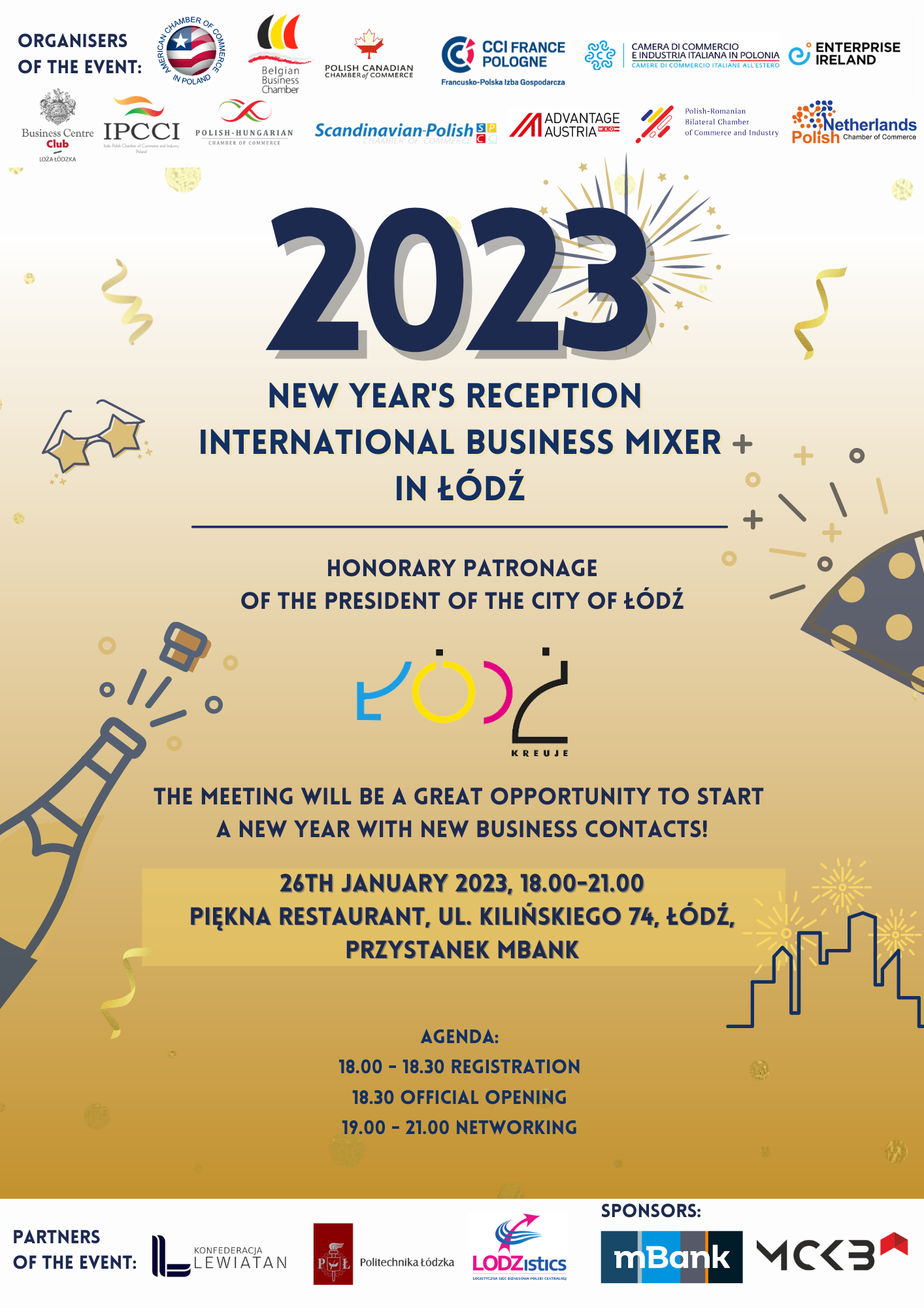 Po raz kolejny łódzkie środowisko biznesowe rozpocznie wspólnie Nowy Rok. Klaster LODZistics jest partnerem wydarzenia. Zapraszamy na New Year's Reception - International Business Mixer - już 26 stycznia 2023 spotkajmy się w Restauracji "Piękna" (siedziba mBanku) w Łodzi.