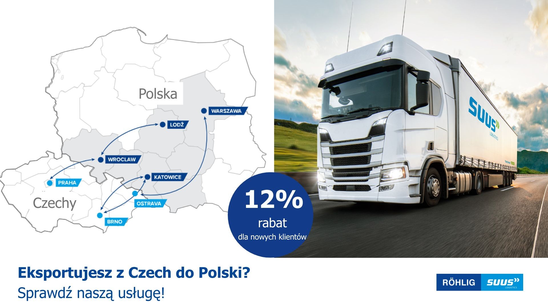 Rohlig SUUS Logistics zapewnia codzienne przewozy z Czech do Polski. Oferuje: 24–48h dostawy, odbiór przesyłek z dowolnego miejsca w Czechach, przewozy drobnicowe i całopojazdowe. Do końca 2025 r. obowiązuje 12% rabatu dla nowych klientów.