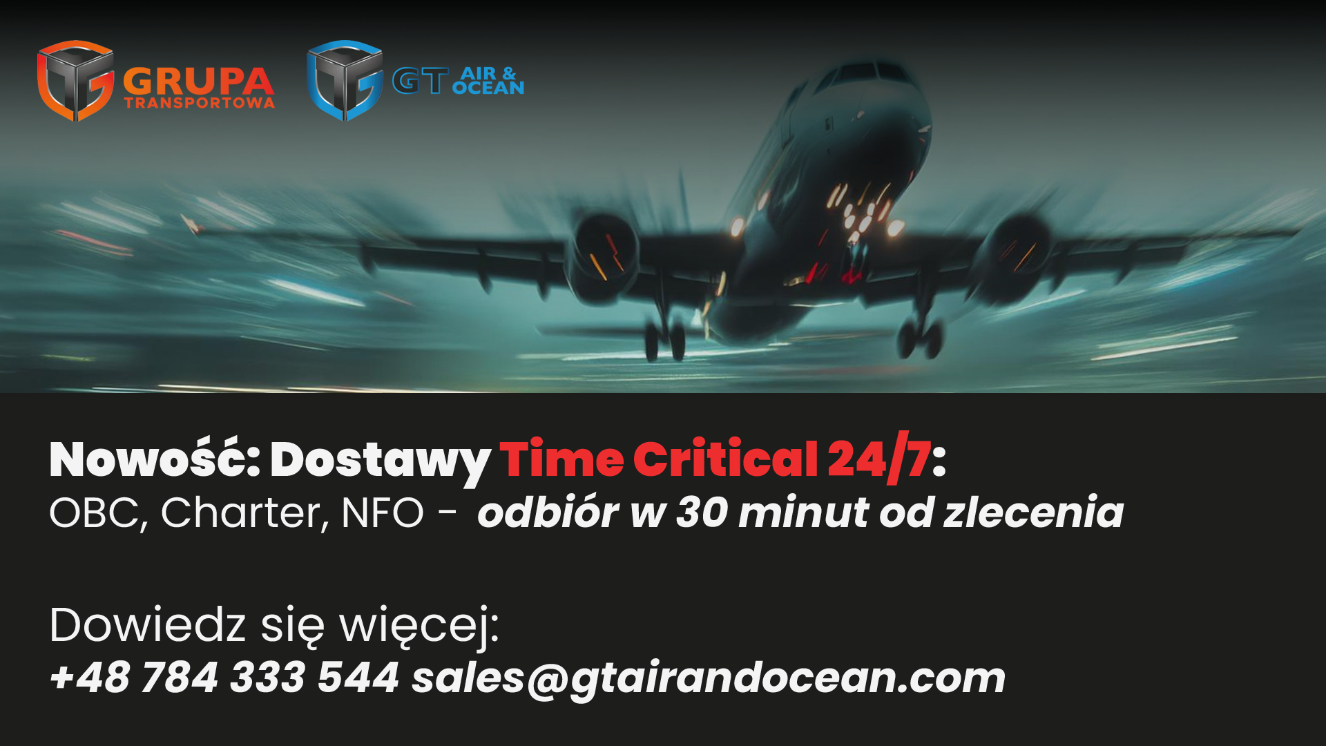 Kontroluj logistykę przed świętami dzięki Time Critical od GT Air&Ocean: OBC, Air Charter, Next Flight Out i odbiór towaru już w 30 minut od złożenia zlecenia. Najwyższy priorytet, ekspresowa reakcja i pełne bezpieczeństwo Twojego towaru.