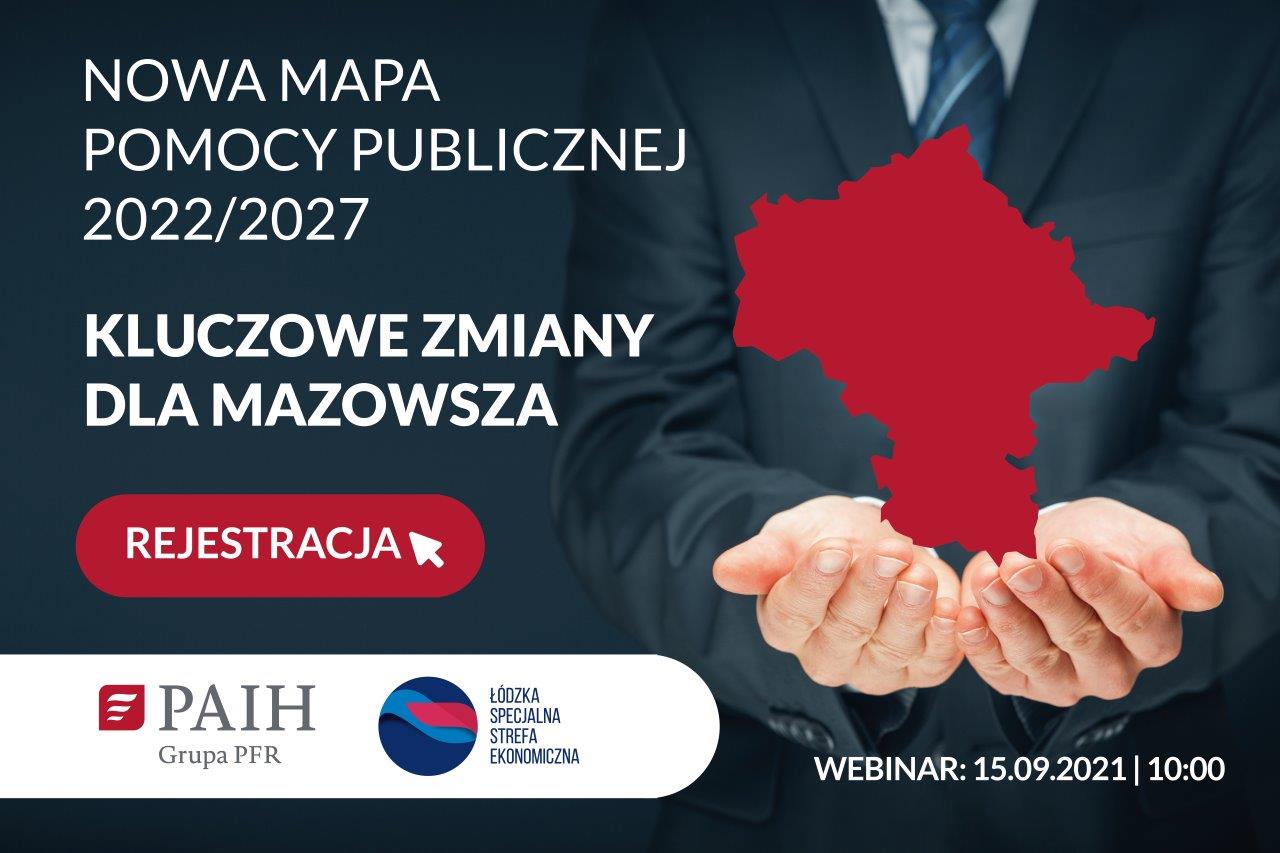 Łódzka Specjalna Strefa Ekonomiczna wraz z Polską Agencją Inwestycji i Handlu organizuje 15 września (środa) o godz. 10:00 webinarium „Nowa Mapa Pomocy – Kluczowe zmiany dla Mazowsza”.