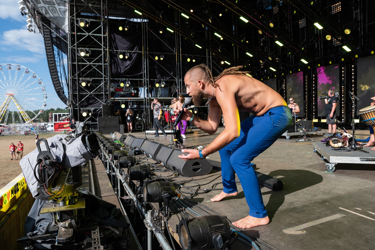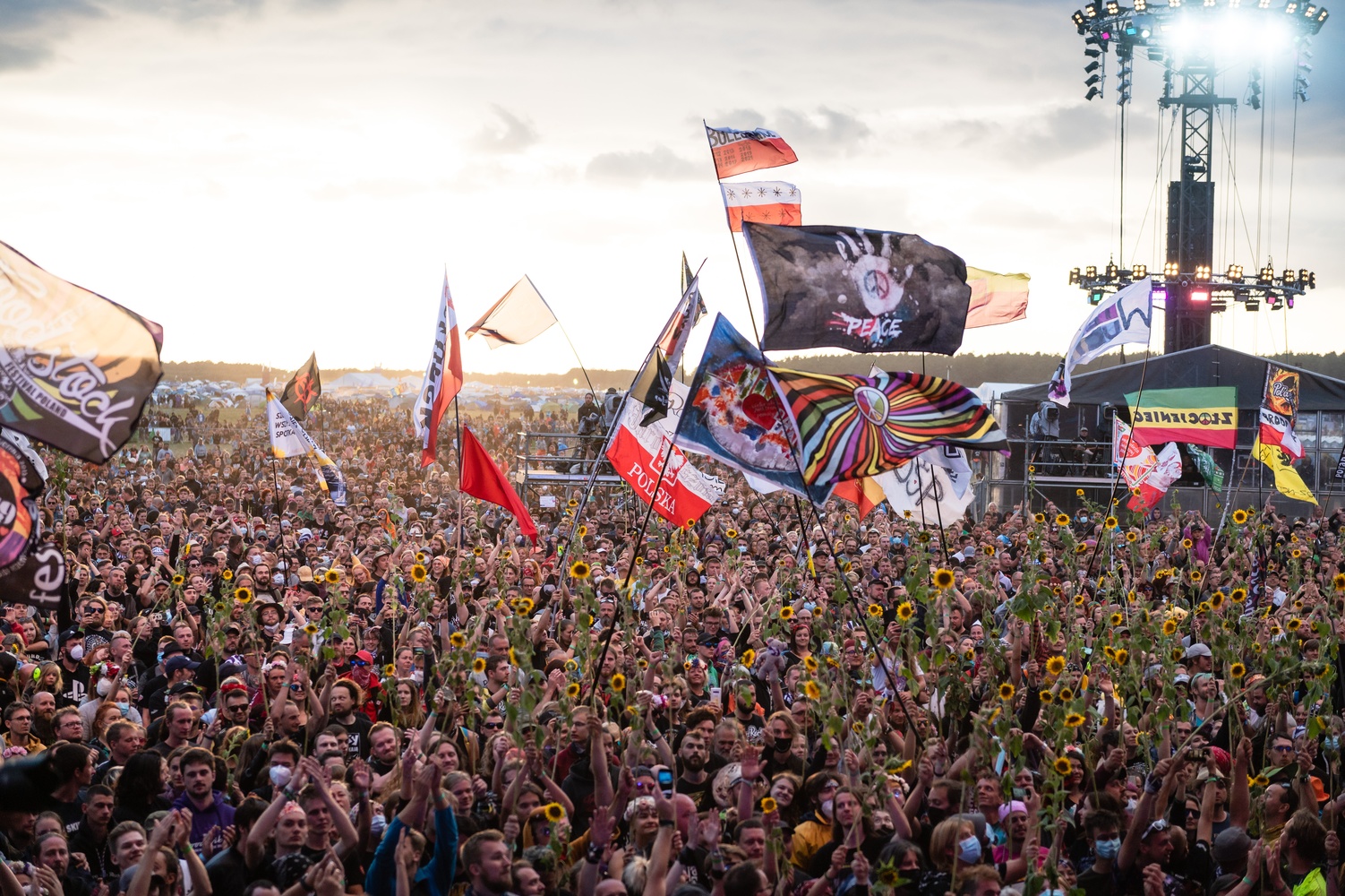 No Logo na 27. Pol'and'Rock Festival, fot. Dominik Malik | “Dzisiaj na świecie nikt nie zrobił takiego festiwalu jak my. Możemy być dumni z tego, co zrobiliśmy”, powiedział dzisiaj na konferencji prasowej Jurek Owsiak. Nowe miejsce, hybrydowa formuła wydarzenia oraz dbałość o zdrowie i bezpieczeństwo uczestników na najwyższym poziomie przy jednoczesnym ograniczeniu liczby festiwalowiczów i zachowaniu rozmachu wydarzenia sprawiły, że o tegorocznej edycji Pol’and’Rock Festival można mówić jako o światowym pionierze podobnych wydarzeń w nowej rzeczywistości. | Przysięga FestiwalowiczówJedną z tradycji Najpiękniejszego Festiwalu Świata jest wspólna przysięga jego uczestników. Festiwalowicze, trzymając wręczone przez wolontariuszy Pokojowego Patrolu słoneczniki, wykrzyczeli za Jurkiem Owsiakiem: To jest mój kawałek ziemi, o który będę dbał i który będę szanował. To jest mój dom, w którym panuje miłość, tolerancja, braterstwo i przyjaźń. Tak mi dopomóż rock'n'roll, rock'n'roll, rock'n'roll! | | Przysięga na 27. Pol'and'Rock Festival, fot. Marcin Michoń |