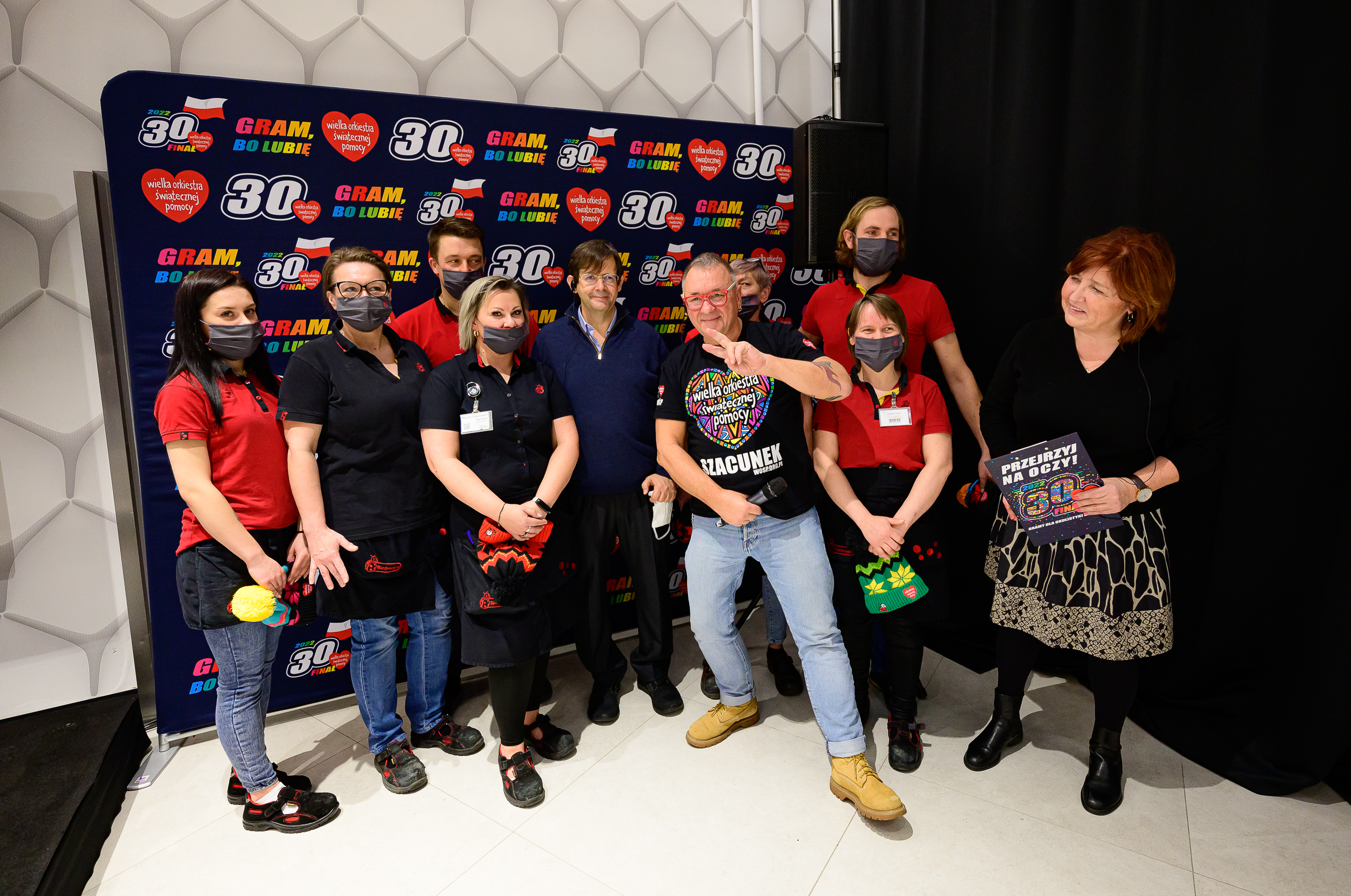 Jurek Owsiak, Lidia Niedźwiedzka-Owsiak i pracownicy Biedronki, fot. Dariusz Breś