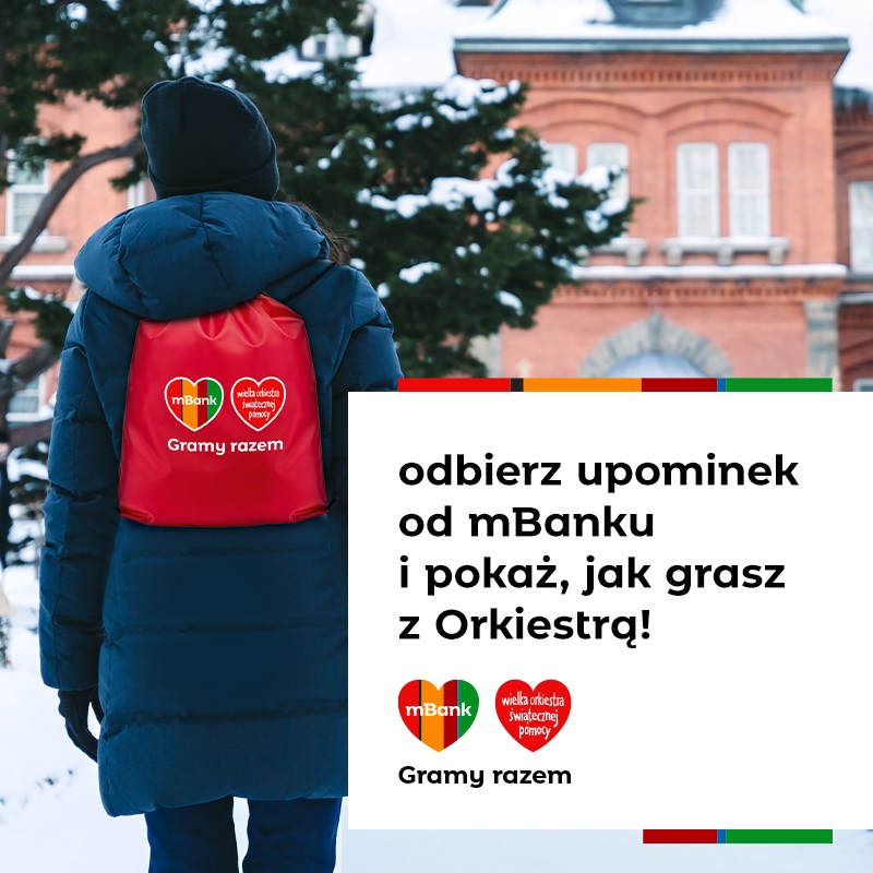 Z tej okazji mamy dla Ciebie wyjątkowy i praktyczny upominek - plecak, który możesz odebrać w swoim sztabie. Noś go nie tylko w ten jeden dzień, ale przez cały rok i pokaż, że wspierasz WOŚP razem z nami. Na naszej stronie www.mbank.pl/wosp dowiesz się, co jeszcze przygotowaliśmy w tym roku.