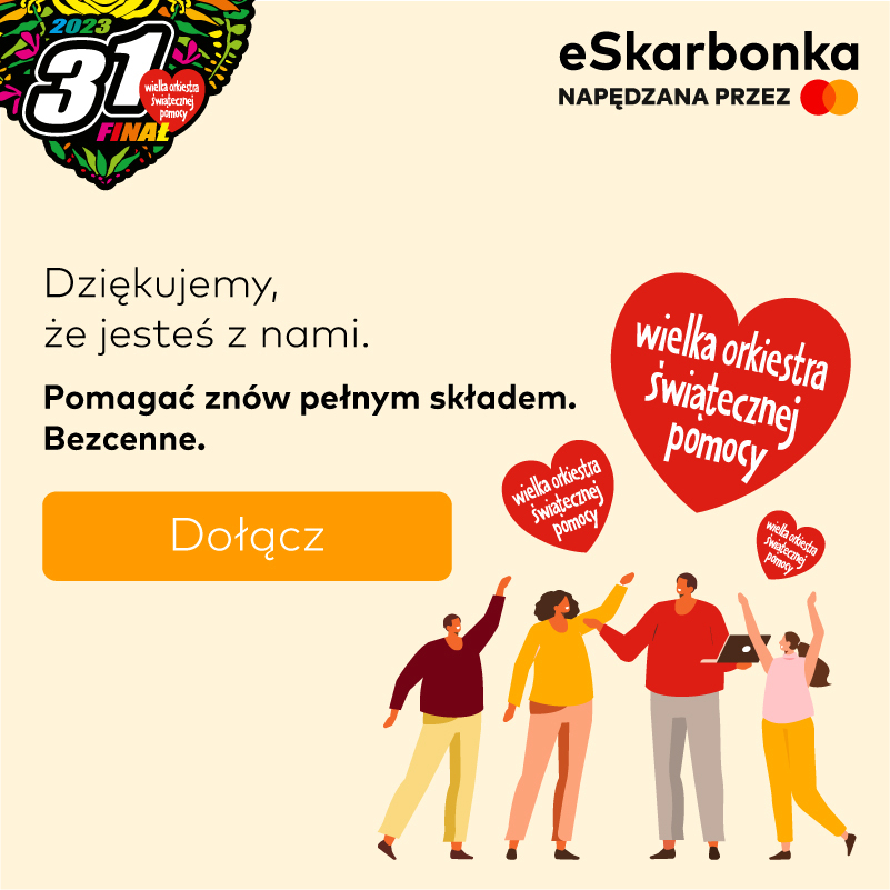 Cieszymy się, że jesteś z nami i znów możemy pomagać w pełnym składzie! Na swoim profilu na portalu iWolontariusz znajdziesz zestaw grafik do pobrania i personalizacji eSkarbonki. Opracowaliśmy również poradnik, który pomoże Ci wypromować swoją eSkarbonkę w Social Mediach. Dziękujemy. | Trzymamy kciuki za najmilszy dzień 31. Finału WOŚP i jeszcze raz dziękujemy, że jesteś z nami! |