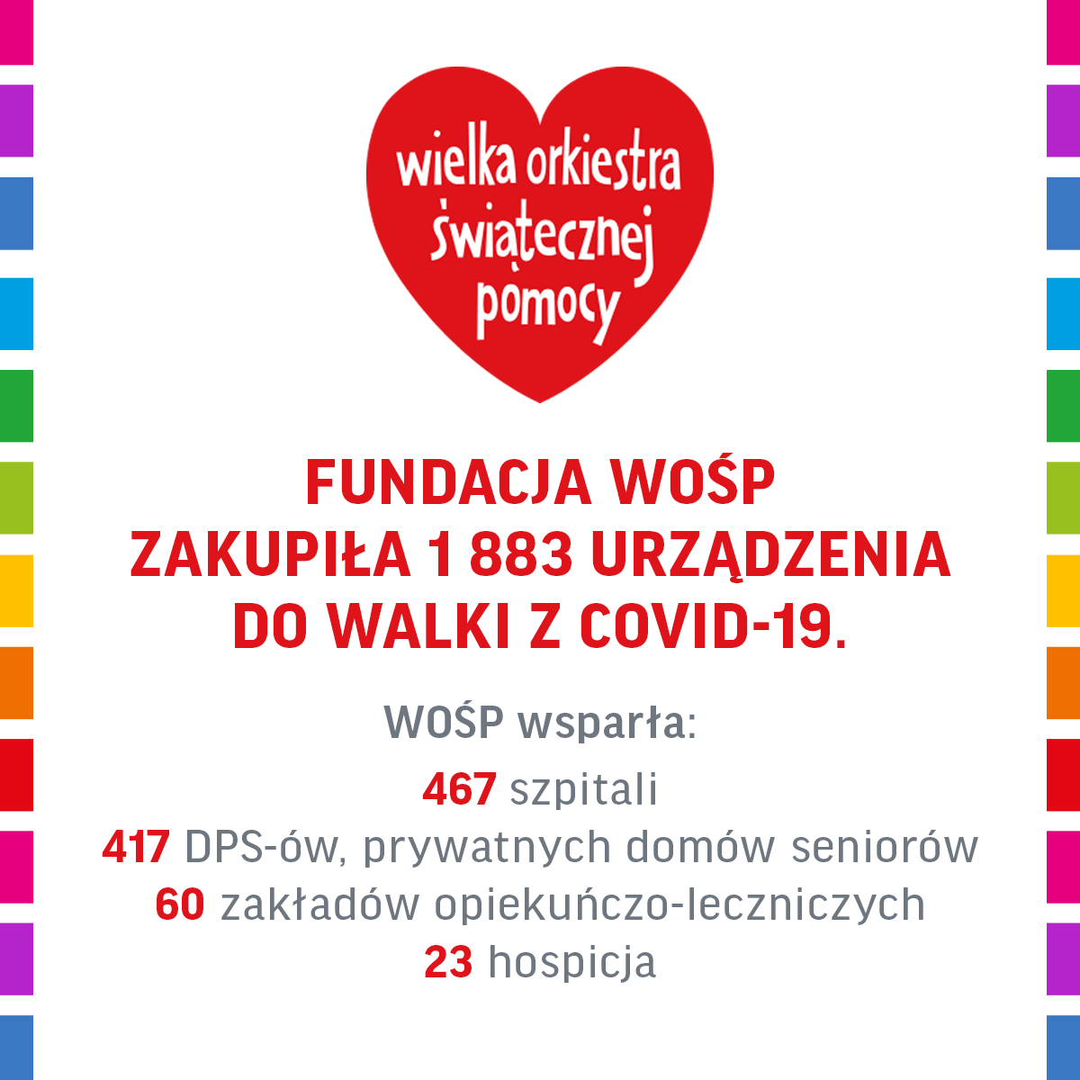 Wielka Orkiestra Świątecznej Pomocy od blisko 30 lat działa na rzecz zdrowia Polaków, zakupując, za środki przekazane przez społeczeństwo, najnowocześniejszy sprzęt medyczny. Jak dotąd Fundacja zebrała ponad 1,5 miliarda złotych i zakupiła ponad 66 tys. urządzeń, które wsparły działania personelu medycznego na oddziałach m.in. neonatologii, dziecięcej onkologii, kardiologii, ortopedii, traumatologii, psychiatrii czy geriatrii.