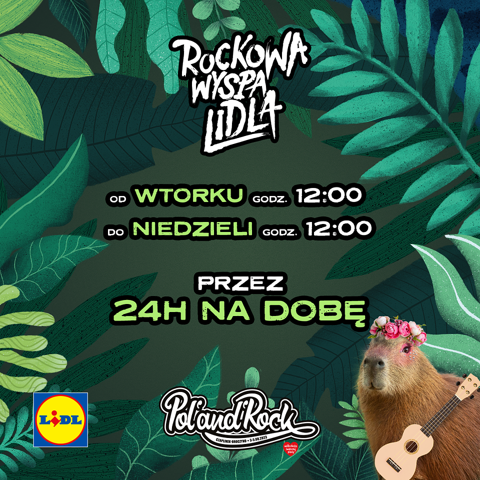 Rockowy sklep Lidl Polska ponownie stanie na Pol’and’Rock Festival! | | Już 3 sierpnia na terenie lotniska Czaplinek-Broczyno rozpocznie się kolejna edycja Najpiękniejszego Festiwalu Świata, czyli Pol’and’Rock Festival. Niezmiennie na festiwalowiczów czekać będzie jedyny w swoim rodzaju rockowy sklep Lidl Polska, w którym uczestnicy znajdą nie tylko artykuły spożywcze, ale również wszystkie niezbędne akcesoria biwakowe! Sklep będzie otwarty nieprzerwanie przez ponad 100 godzin! | | Sieć już od 14 lat wspiera działania Fundacji WOŚP, a do tej pory, wraz z klientami, przekazano na cele organizacji ponad 43 miliony złotych. W podziękowaniu dla wszystkich wolontariuszy zaangażowanych w Finały WOŚP, na Festiwalu nie zabraknie rockowego sklepu Lidl, który będzie otwarty nieprzerwanie przez ponad 100 godzin. | | | Rockowy sklep Lidl Polska ponownie stanie na Pol’and’Rock Festival! fot. Paweł Krupka | | | Lidl’and’Rock, czyli Rockowa Wyspa Lidla po raz 13. na Festiwalu! Pol’and’Rock Festival rozpocznie się w tym roku w czwartek, 3 sierpnia i potrwa do soboty, 5 sierpnia. Rockowa Wyspa Lidla, czyli wyjątkowy sklep Lidl Polska, będzie jednak otwarta dla festiwalowiczów już od wtorku, 1 sierpnia, aż do niedzieli, 6 sierpnia. Dzięki temu wszyscy obecni na terenie festiwalowicze będą mogli dokonać zakupów na miejscu przez cały okres swojego pobytu.